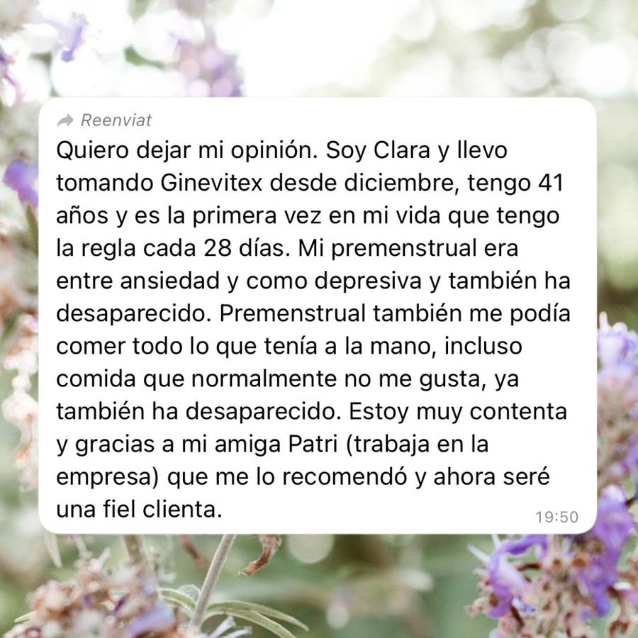 Aquí puedes leer más experiencias tomando Ginevítex para aliviar su fase premenstrual: