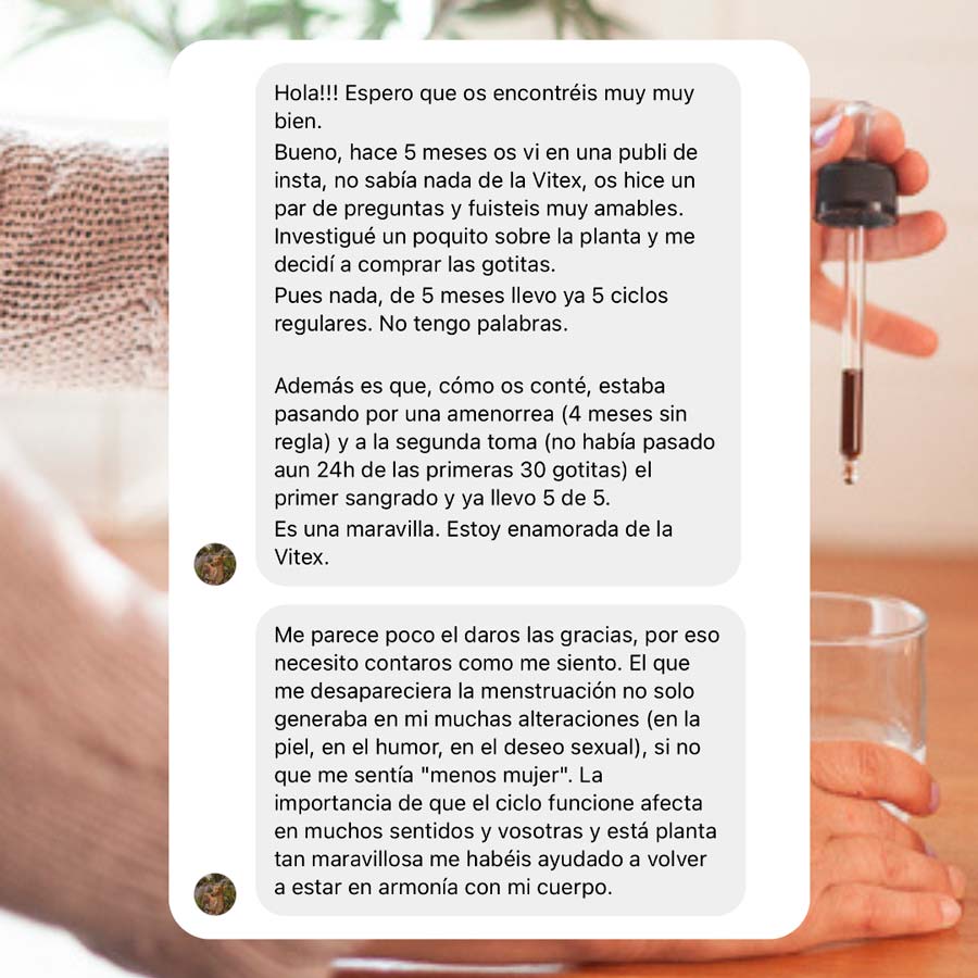 Noté mejoría desde el primer periodo siguiente a tomar las gotas, porque ya no me vino a los 15 días. También noto que, cuando mantengo relaciones, estoy más lubricada desde el principio. Los cambios de humor son menos drásticos (mi marido está encantado jijiji).